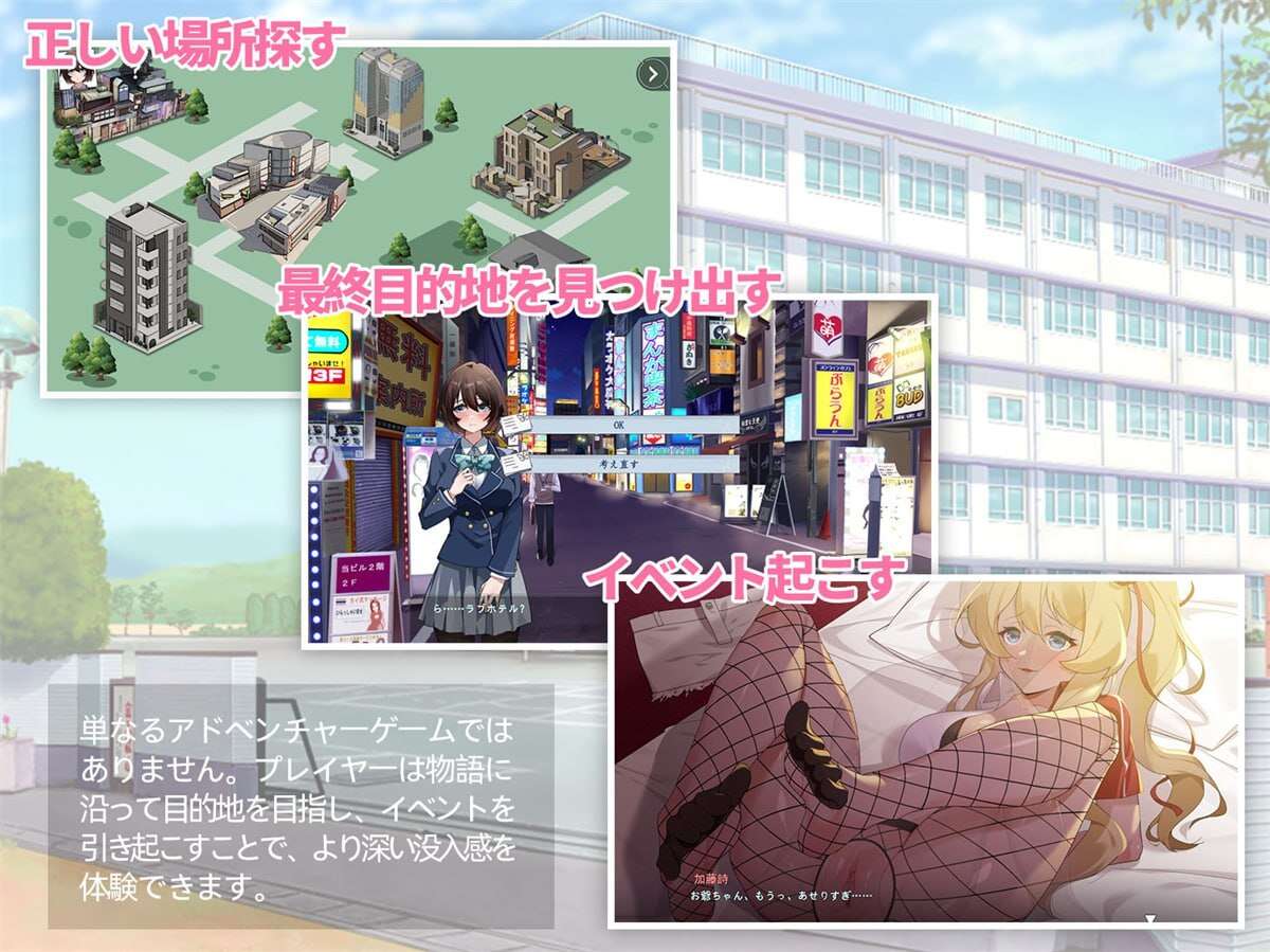 故事的主角是平凡的女高中生加藤诗。她有最喜欢的好朋友,还有最爱的男朋友。她非常幸福。然而……她内心总觉得缺少了什么。那一天,她在厕所里看到的东西改变了她。面对欲望的陷阱,她能否获得幸福,还是会完全被欲望所支配?一切取决于玩家。这是一个以青春迷惘为主题的故事。